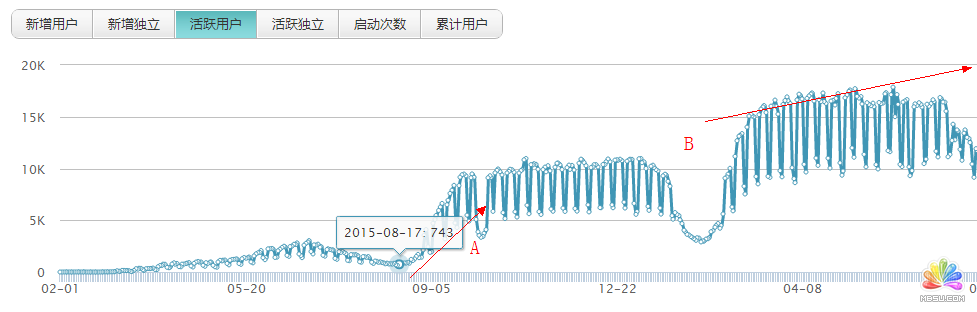 回到案例上,从15年2月项目启动,A产品处在引入期,所以用户明确,也通过种子用户得到了快速增长(下点有具体分析)而在12月17日推出开放注册功能后,其实是想从引入期过渡到成长期: