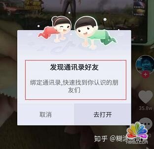 抖音为了让用户速度绑定通讯录,在App的界面上放了很多入口,左上角,弹窗,中间等,这种的设计意图其实是非常明显的,通过你的通讯录进行不断的扩散。