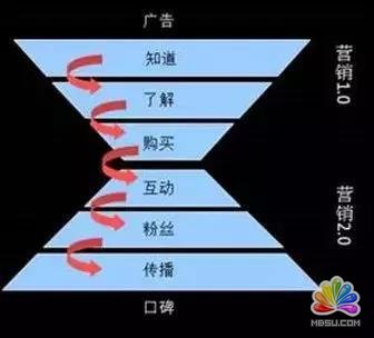 以前,营销体系更多是一个漏斗模型。一级一级的转化,效率比较低。社群时代,营销进入2.0,更加注重口碑,强调互动、裂变和传播。