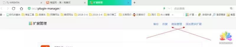 点击之后,出现下图中的备份、恢复、高级管理、添加更多扩展,点击“添加更多扩展”: