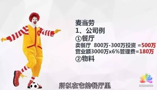 第二,麦当劳还要拿大概6%左右的管理费,如果一个餐厅一年下来有3000万的营业额,这个6%的管理费,我一年还能收180万。