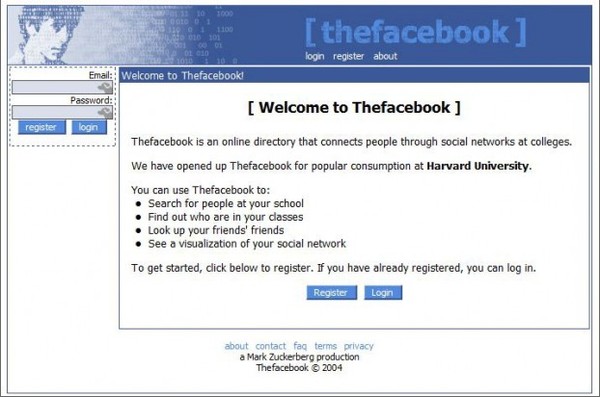 2、Facebook,于2004年2月4日上线,以下是2004年时 Facebook 的界面。现在:
