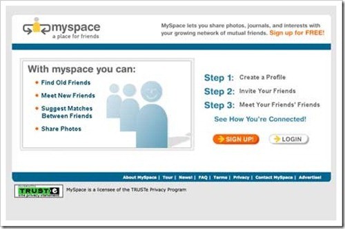 11、 Myspace,是一个社交网络服务网站,提供人际互动、使用者自定的朋友网络、个人档案页面、部落格、群组、照片、音乐和视讯影片的分享与存放。现在: