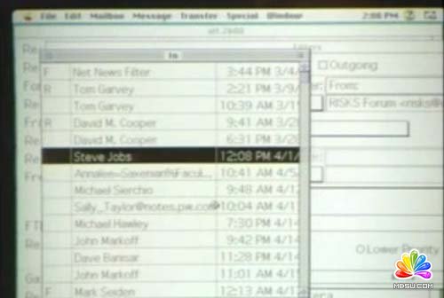 他表示自己最喜欢在互联网上使用电子邮件,下图展示了他从史蒂夫•乔布斯(Steve Jobs)处收到的邮件。