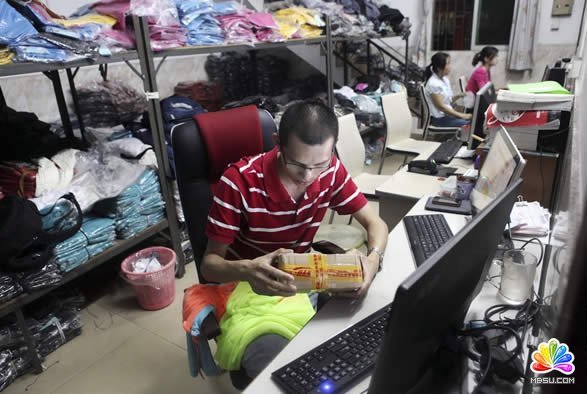 2013年5月9日,杭州,工作室里屋里除了一个电脑桌和一张沙发,其他空间都摆放着各种产品。淘宝店主汪杭萍飞快地按着计算器计算最近的收支。