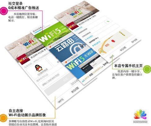 WiFi5广告路由(www.wifi5.com) 帮助店商建立客户管理系统,消费者通过QQ、新浪微博、手机号码登录免费wifi网络,当消费者认证上网功能实现以后,商家就有了自己的wifi会员,通过后台就可以向会员推送一些优惠、促销信息。 WiFi5广告路由(www.wifi5.com) 在为商家招揽生意的同时,也拥有了宝贵的客户资源。在双方不断增加互动的前提下,已然成为“二次营销利器”。