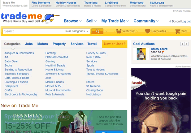 可 能用“偏爱”这个形容词比“发达”更适合,从技术面来讲,国内能做到的基本这边也能做到,技术无障碍,习惯问题。因为新西兰的老外更热衷于“拍卖” (auction)而非“定价电商”。这里流量最高的网站是www.trademe.co.nz,类似淘宝(不完全是)。算是C2C和B2C结合在一起 的,但和淘宝有点不相同,就是大家不太喜欢一口价成交,1元起价相互bidding(竞价)更受到欢迎。或许新西兰人更喜欢淘点便宜(bargain)货 并享受一下竞价过程的乐趣吧。